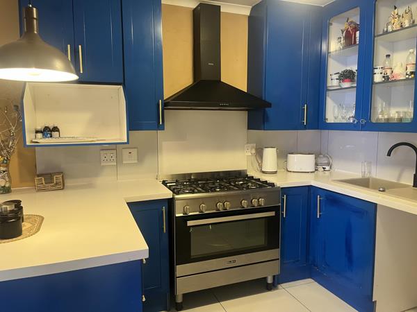 This modern corner Simplex home in Tinderwood Village, Albertsdal, offers a perfect blend of style and functionality. This sunlit property features a spacious living area and a modern kitchen featuring ample cupboards and a gas stove.