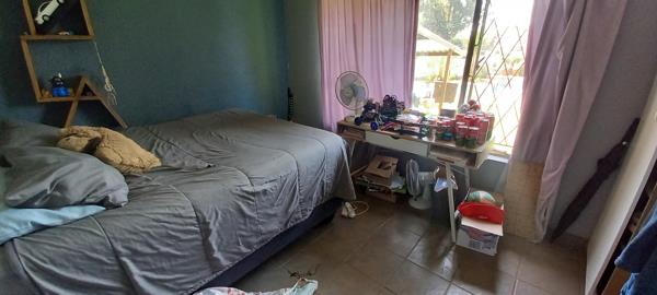 The home comprises three comfortable bedrooms, each featuring tiled flooring and large windows that invite natural light. The master bedroom benefits from a private en-suite bathroom, while a second well-appointed bathroom serves the remaining rooms. Security bars on windows provide peace of mind.