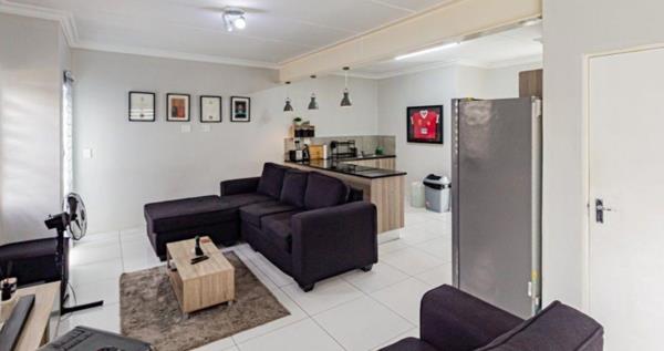 Discover a sophisticated urban sanctuary nestled within a desirable complex in Albertsdal, Alberton. This meticulously designed residence, spanning 106 square metres, offers an exquisite blend of comfort and contemporary living, perfect for discerning individuals or families seeking a refined lifestyle. The interior boasts a seamless flow, featuring a spacious lounge that serves as the heart of the home, ideal for both intimate gatherings and grand entertaining. The well-appointed kitchen provides a functional yet elegant space for culinary pursuits.