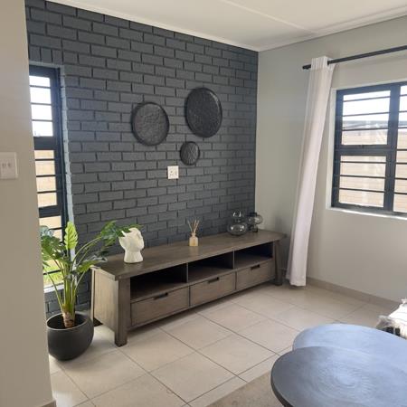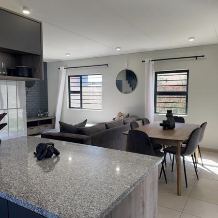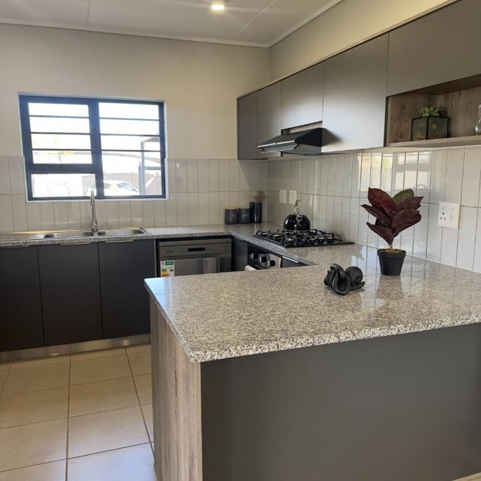 Downstairs welcomes you with an open-plan lounge and dining area that flows effortlessly into a modern kitchen fitted with ample cupboard space and quality finishes. The layout creates a warm and inviting atmosphere, perfect for family gatherings. Upstairs, the bedrooms provide privacy and comfort, with the main bedroom offering extra space and natural light.
