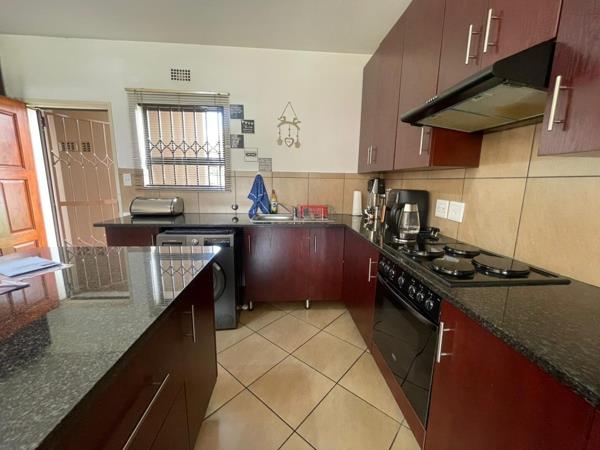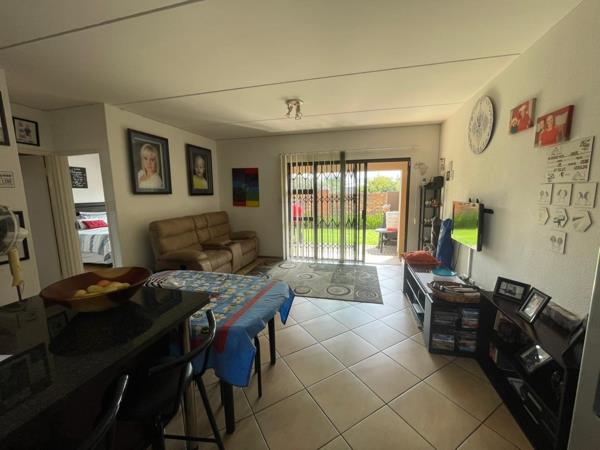 Residents benefit from two dedicated parking spaces and access to a communal garden area. The complex prioritises security with 24-hour surveillance, CCTV, an access gate, and electric fencing, further enhanced by burglar bars and a security gate on the unit. Additional amenities include a tennis court for recreation and a solar geyser, contributing to energy efficiency.