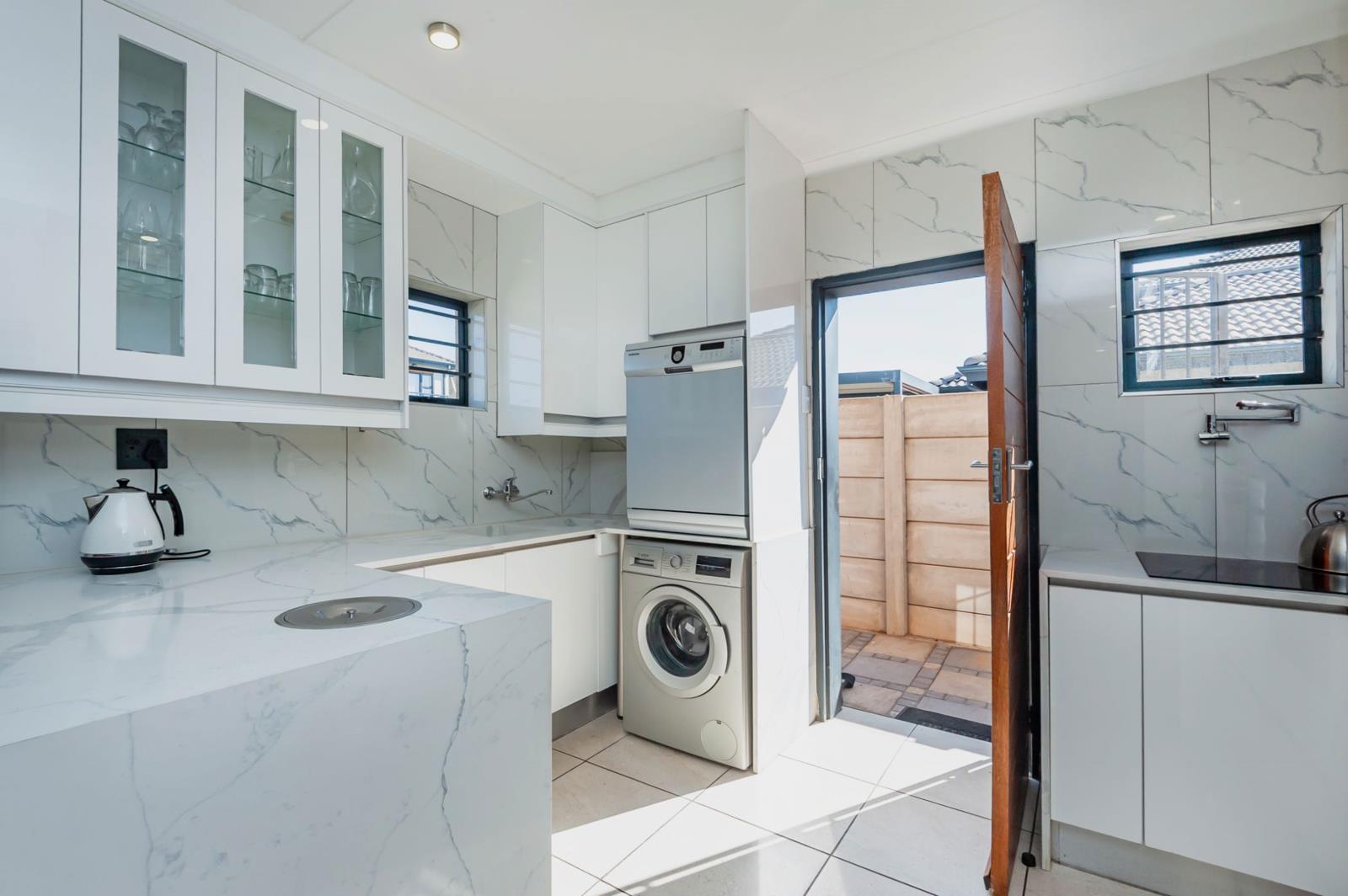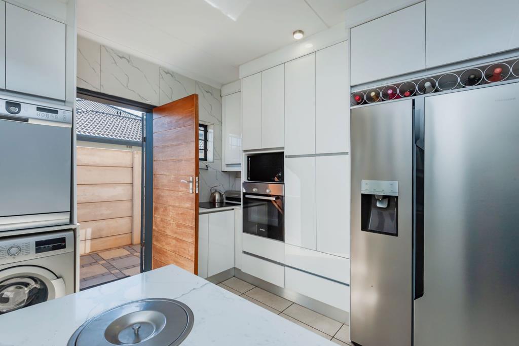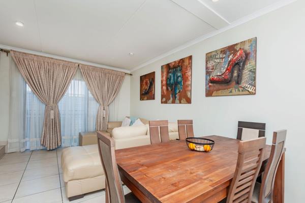 Boasting four generously sized bedrooms, including a lavish master suite with its own private en-suite bathroom, this double story house offers luxurious living. The open-plan layout effortlessly integrates the kitchen and lounge, encouraging seamless interaction, with sleek and modern fittings, the kitchen combines practicality with sophistication for your culinary pursuits. Step outside and unwind in the tranquility of the meticulously landscaped garden, ideal for outdoor leisure activities. It comes will solar, motorised gate and exclusive TV room.