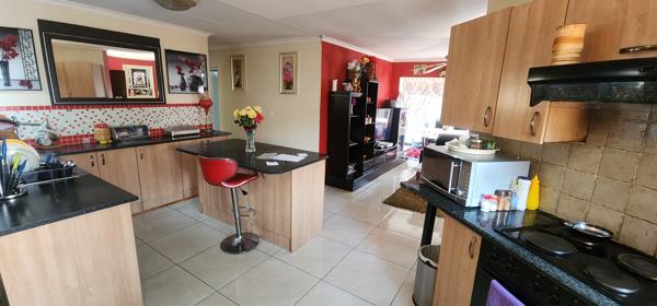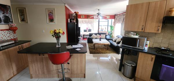 A stylish kitchen is the heart of this home, boasting ample storage, worktops, a center island, and space for your washing machine. The open-plan living area extends into a sun-filled dining space that opens to a spacious, private gardenperfect for summer braais, pets, or just soaking in the afternoon sun.