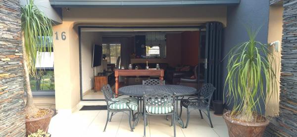 The modern kitchen is equipped with a gas hob and electric oven, making meal preparation a delight. Beyond the interior, the generous backyard is a true retreat, featuring a pool and a lapa, ideal for outdoor relaxation and entertainment.