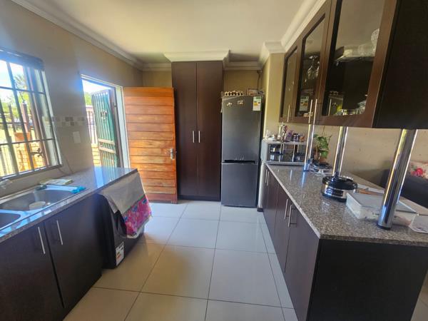 Large tiled open plan Lounge, dining room and Kitchen. Kitchen with granite tops and lots of space for your electrical appliances. Back door opening onto garden.