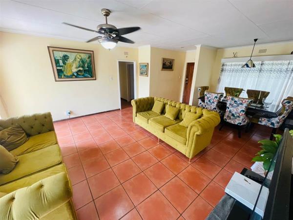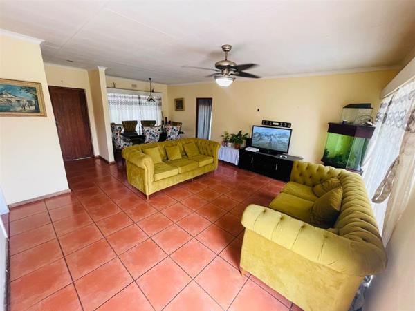 The home features four spacious bedrooms with built-in cupboards and two well-appointed bathrooms, including a main en-suite. The welcoming entrance hall flows into open-plan living spaces that include a bright lounge and dining area perfect for family time or hosting guests.