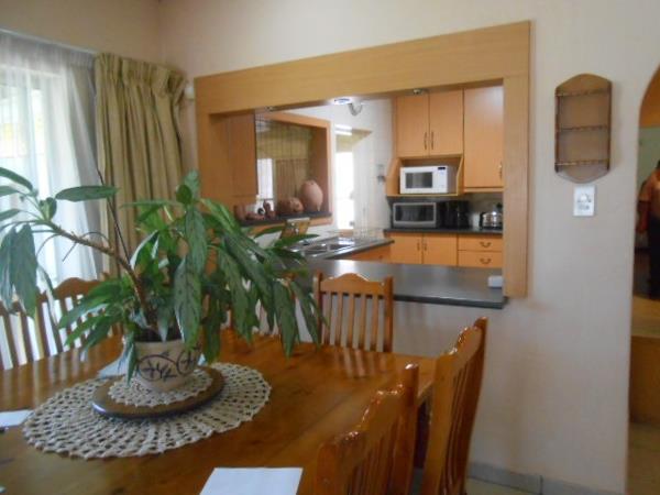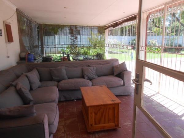 Love at first sight. This lovely spacious property boasts 3 neat bedrooms with built-in cupboards, 2 bathrooms, a Lounge, and a dining room. The kitchen is clean with a laundry with ample cupboard space and a washing machine connection. Enclosed patio with lots of space. Fiberglass pool. Outside storeroom. 2 Automated garage doors. Lovely garden. Excellent security with Closed Circuit TV.