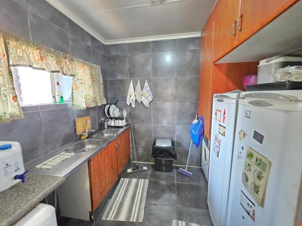 This versatile property offers the perfect combination of space, comfort, and investment potential. The main house boasts three spacious bedrooms with built-in cupboards, complemented by two bathrooms, one being a private en-suite. A well-sized kitchen fitted with formica tops flows effortlessly into the big tiled lounge and spacious dining area, creating an ideal setting for family living and entertaining.
