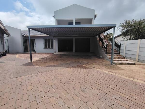 This expansive residence, situated in the desirable suburban enclave of Brackendowns, Alberton, offers a substantial living experience across a 1018.00 sqm erf. The property presents a commanding kerb appeal with a large paved driveway leading to a spacious carport and double garage, complemented by visible security gates and burglar bars on ground-floor access points, ensuring peace of mind.