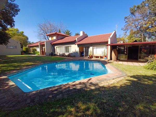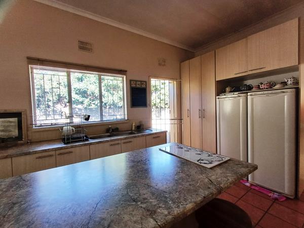 From the family/TV room leading with sliding doors to the enclosed patio with a built-in braai and bar overlooking a gorgeous sparkling pool.