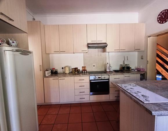 Modern kitchen with ceaserstone counter tops, loads of cupboard space, space for all your appliances as well as a double-door fridge.