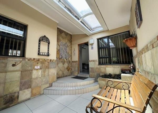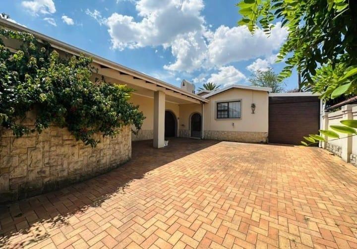 Discover this inviting family home, ideally situated in the established suburban area of Brackendowns, Alberton, South Africa. From the moment you arrive, the property presents a welcoming kerb appeal with its spacious, well-maintained brick-paved driveway and a covered carport, offering ample parking for multiple vehicles. The attractive stone-faced wall, adorned with lush climbing greenery, and classic arched doorways create a charming first impression, complemented by visible security bars and a security gate for peace of mind.