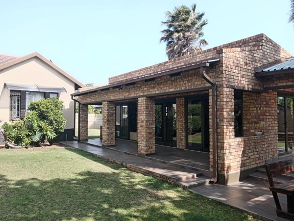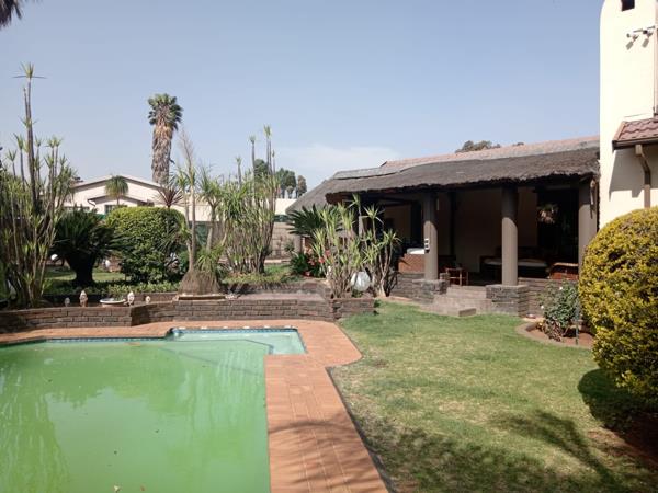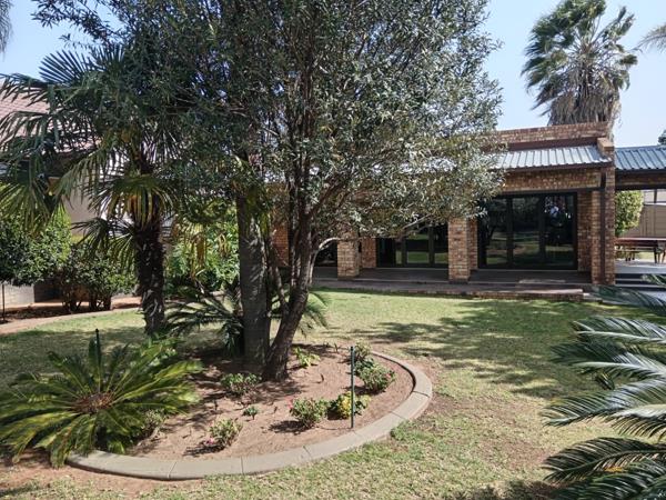 The outside offers a beautifully landscaped garden featuring a thatched covered patio with a built-in braaiperfect for al fresco dining. Dive into the sparkling pool or unwind in the expansive entertainment area, complete with a 12-seater bar that promises endless fun and a gas spit braai to provide meals whiles you are at it. Additional amenities include his and hers outdoor toilets, another charming thatch area with a bar counter, as well as a flat-let and storeroom for extra versatility, rainwater catchment system to maintain the stunning garden. Parking will never be an issue with the tandem covered carport offering ample parking space for your guests