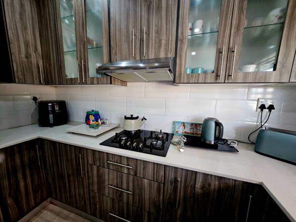 The outdoor space is massive and is complemented with a sparkling splash swimming pool and built-in braai for chilling and hosting guest. This property has extra space that offers you the opportunity to add extra buildings. This immaculate home is surrounded by a well manicured garden that is elevated on a 1390m2 stand.