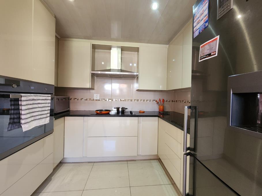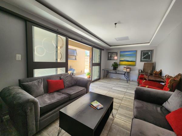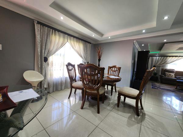 Beautiful, modern and neat house to make your own. Three bedroom with ample cupboard space. 3 Bathrooms fitted with bath and shower. Open plan lounge leading to the dining room with modern finishes. Entertainment area with an outside built-in braai on the patio. Flat with a bathroom. Laminated and tiled floor. Double lock-up garage. Neat garden with lots of paving.