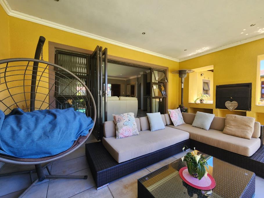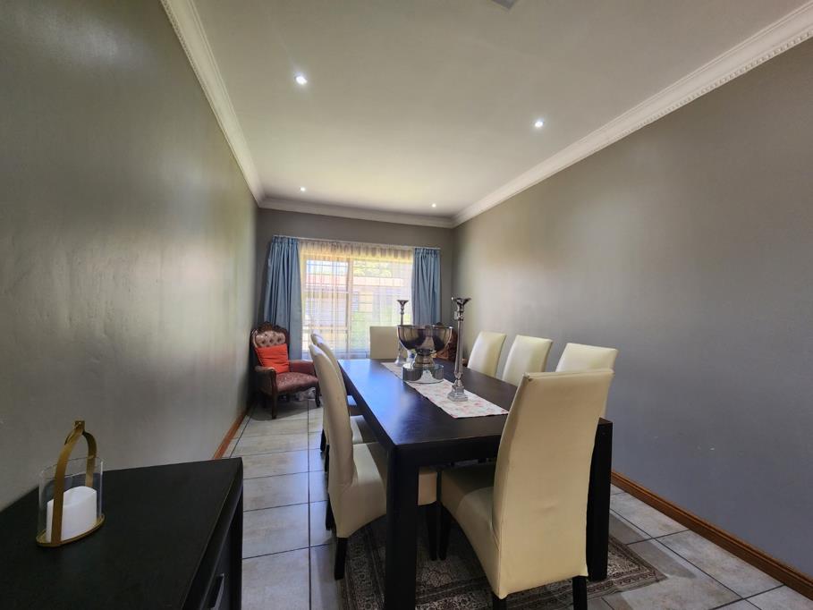 This is a neat a modern property that you can make this house your home. Spacious three bedroom with built-in cupboards. Two modern bathrooms with shower and corner bath. Lounge with sliding door leading to a patio overlooking a sparkling pool and lapa. Entertainment area that is interlink to the lounge. Fining room that will house a table and 8 chairs. Gas stove and oven. Ample cupboard space and extra space for your top loader washing machine, double and single fridge. Tile floors. Pre-paid meter. Alarm system and security gates. Double lock-up garage. Pet friendly.
