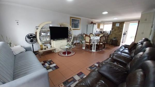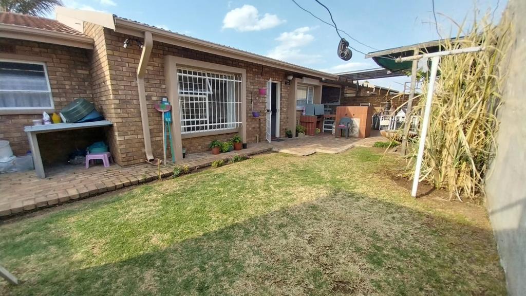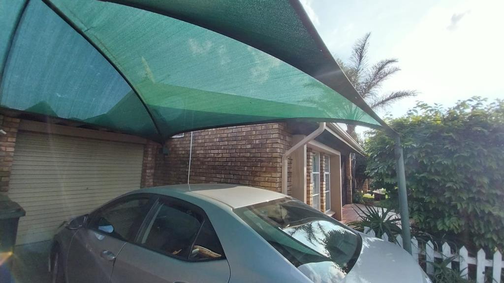 the back yard is a lovely size with built in braai and covered area that can be used for entertainment or a vehicle,