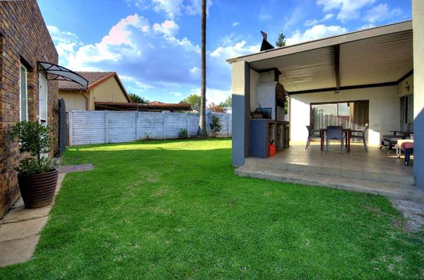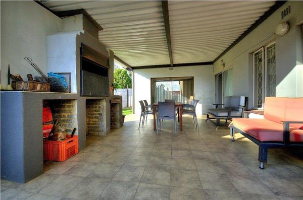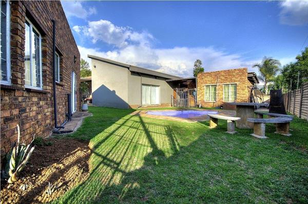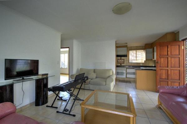 Excellent position in quiet cul-de-sac, and within walking distance to everything! Entrance hall, massive lounge, family room, 3 spacious bedrooms, 2 bathroomsshower study, covered entertainment patio with built in braai overlooking sparkling pool. Fully fitted kitchen , 3 garages 2 currently used as a studio with laminate floors, full staff quarters. PLUS cottage comprising 2 large bedrooms, 2 bathrooms, giant lounge and dining room, large kitchen plus separate laundry.