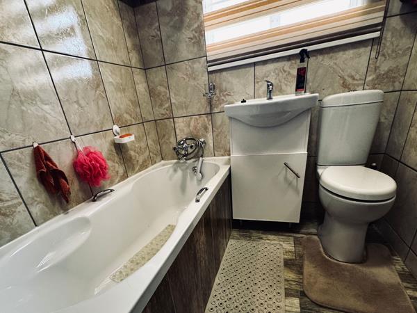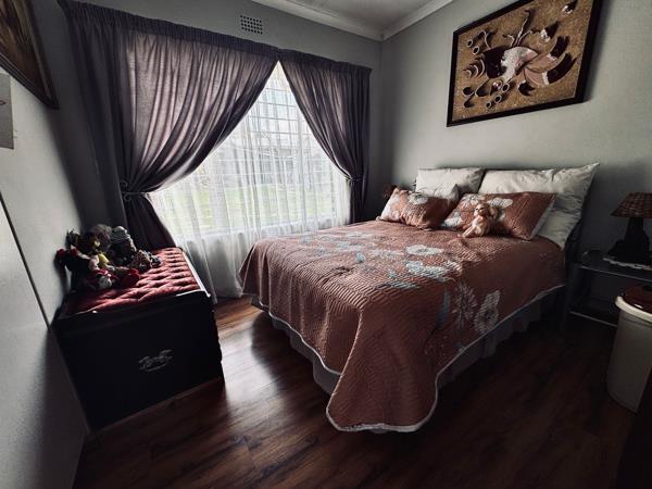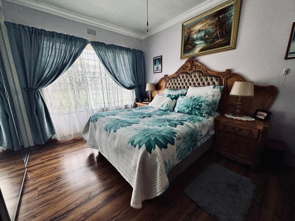 The garage is not only designed to park vehicles but also comes with shelves and cupboards and plumbing, making it suitable for use as a laundry and workshop. The garden is beautifully landscaped with a well-maintained lawn and beautiful plants. The backyard is divided by a low fence, creating a private sanctuary with a wooden garden flat located at the back of the property. This self-contained flat has its own prepaid electricity and water, a solar geyser, a covered patio, an open-plan lounge and kitchen, a bathroom with a shower, and a spacious king-sized bedroom with plenty of built-in wardrobes.