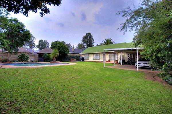 In the heart of Area - beautiful sought after street! 3 bedrooms, 2 bathrooms (shower), massive lounge, dining room, sunken tv/family room, fitted kitchen. Giant patio with retractable awning overlooking sparkling pool and lapa set in established gardens. Garage with drive through to 3 carports at back of property doubling up as an enormous entertainment area. Hurry