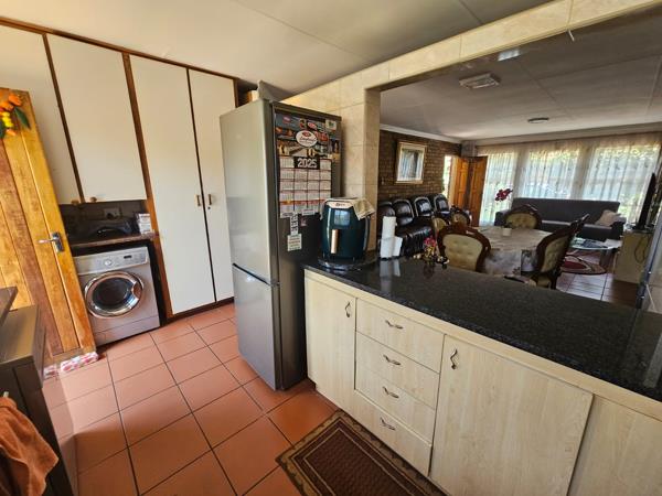 Large tiled open plan Lounge and Dining room opening onto front stoep.