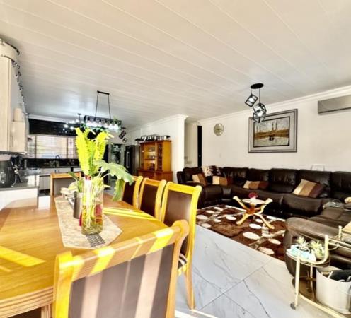 Open Plan Living Area Includes a lounge and dining room with air conditioning, blinds, and a sliding door leading out to the garden