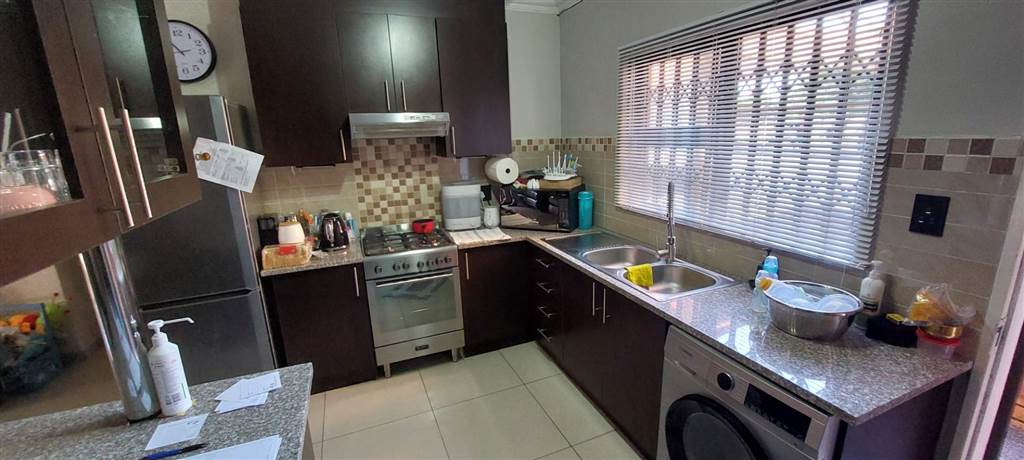 Large open plan tiled Lounge opening with sliding doors opening onto patio with build in braai and garden. Modern Kitchen with granite tops, breakfast nook and ample space for all your electrical appliances.