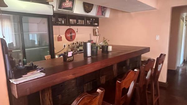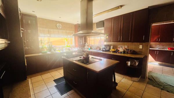 Spacious kitchen with build-n cupboards with plenty of space island with electric stove and extractor fan, bar area, lounge and dining, 6 bedrooms with wooden flooring, 7 bathrooms tiled throughout, storage room, 3 garages, pool and a big yard.