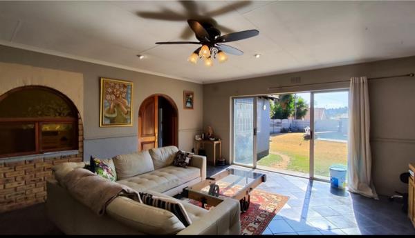 Fitted kitchen with modern finishes, plenty cupboards. Lounge and diningroom, land scaped garden, sparkling swimming pool.