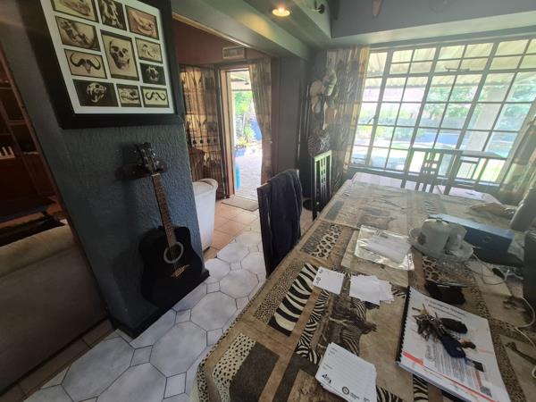 The three well-proportioned bedrooms are complemented by two bathrooms, including a convenient en-suite, ensuring comfort and privacy for the household. Ample built-in storage is available throughout the home. Outdoors, residents can enjoy a refreshing swimming pool, perfect for enjoying the South African climate, and a spacious, pet-friendly garden. Parking is abundant with a double garage and an additional six open parking spaces. For peace of mind, the property is secured with an alarm system, access gate, fencing, and benefits from 24-hour security.