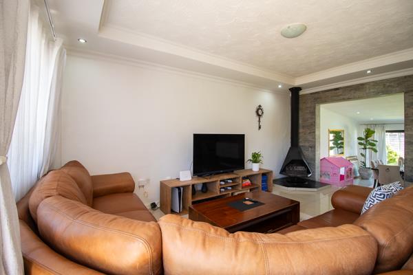 From the dining area, sliding doors open onto a covered patio overlooking the sparkling pool, offering the ultimate space for weekend braais, family gatherings, or simply relaxing while enjoying the exceptionally large garden that extends both front and back complete with lovely views and loads of space for kids and pets to play.