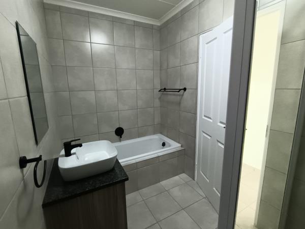 -Bedrooms & Bathrooms: 2 spacious bedrooms with built-in cupboards and 2 modern bathrooms, including a primary en-suite bathroom with a glass-enclosed shower. The second bathroom is fitted with a bathtub, shower and a stylish basin.