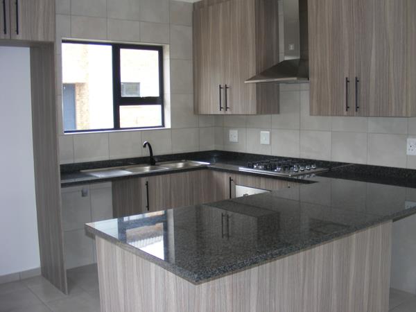 Kitchen with high-end modern finishes featuring a gas hob, granite counter tops and ample cabinets for storage.