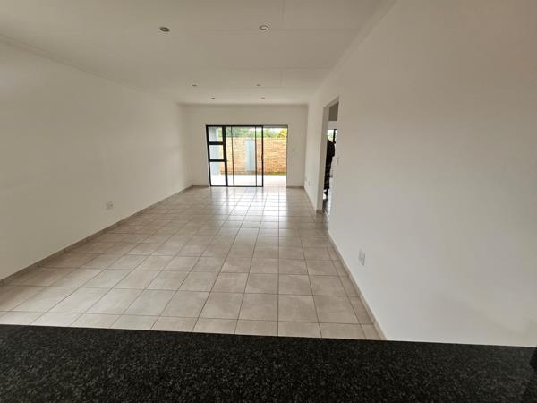 Open plan Lounge, Dining room opening with sliding doors onto covered patio overlooking garden.