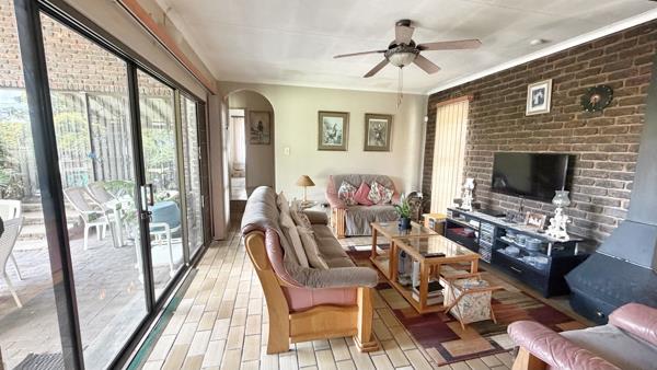 The home offers three generously sized bedrooms, all fitted with built-in cupboards and air conditioner in the main bedroom. Both the family bathroom and en-suite bathroom are full bathrooms, complemented by the added benefit of a solar geyser for energy efficiency for the main en suite bathroom. The lounge, passage and main bedroom all open out to the patio area with large sliding doors allowing ample natural light and air into the home.