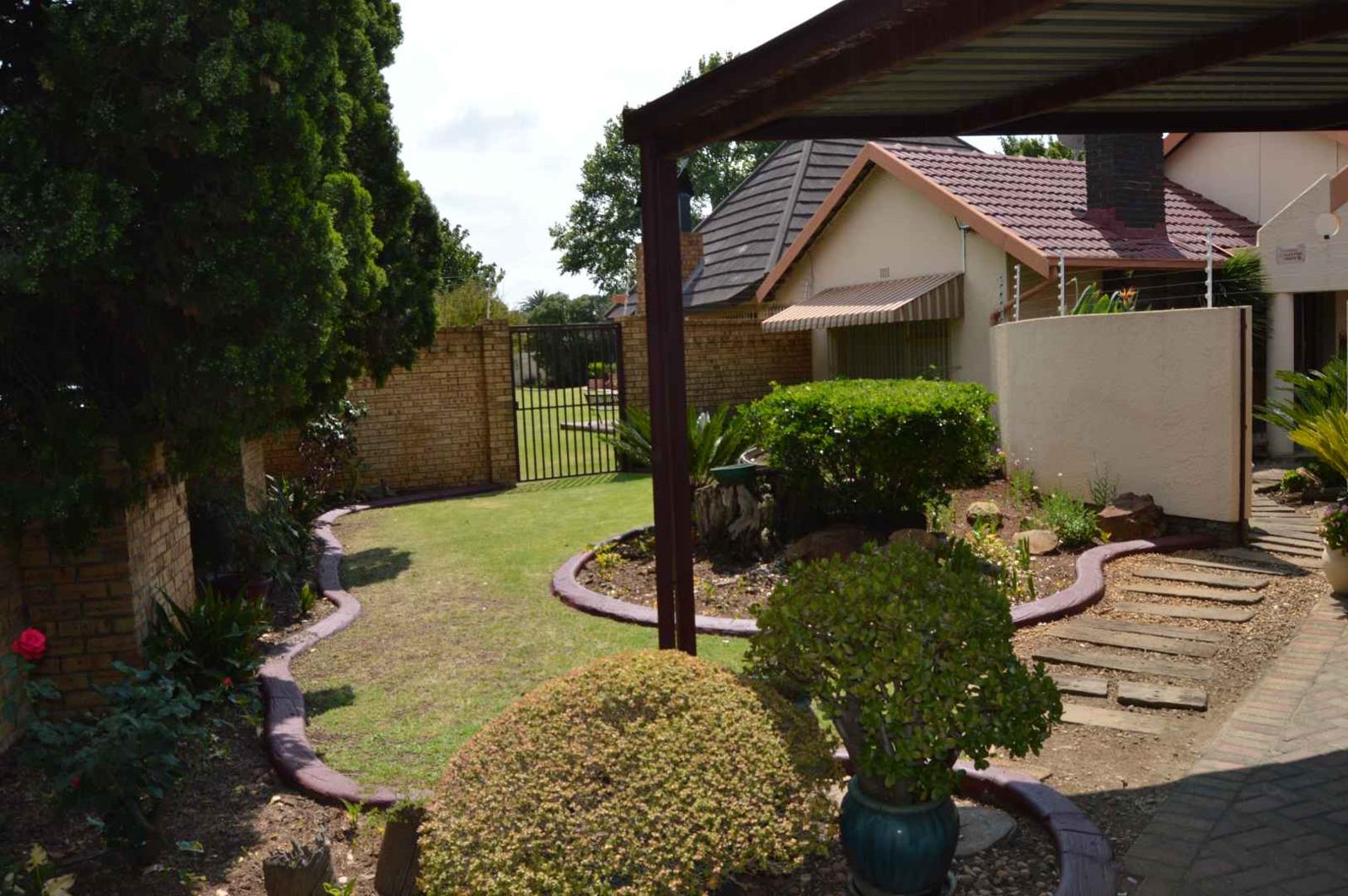 The property features a large, enclosed patio with three sliding doors, trellidoors, and two built-in braais, all overlooking a beautifully landscaped garden and inviting swimming poolperfect for entertaining guests or enjoying peaceful family gatherings.