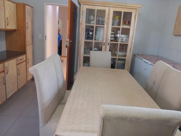 This impressive home offers four generously sized bedrooms, each with built-in cupboards and laminated flooring. Additionally, there is a separate study, perfect for remote working or a quiet reading nook. The property is serviced by two well-appointed bathrooms the first includes a bath, shower, basin, and a separate toilet, while the main en-suite features a bath, basin, and toilet.