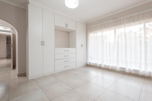 Same tiles throughout, fiber internet, prepaid electricity, passage linen closet, alarm system, Solar geyser
