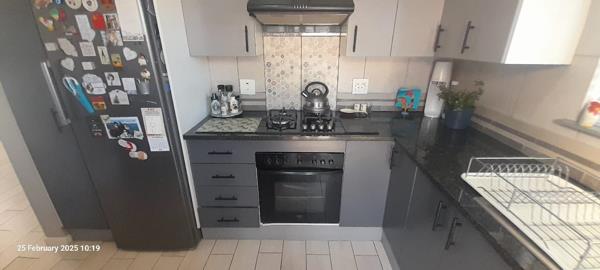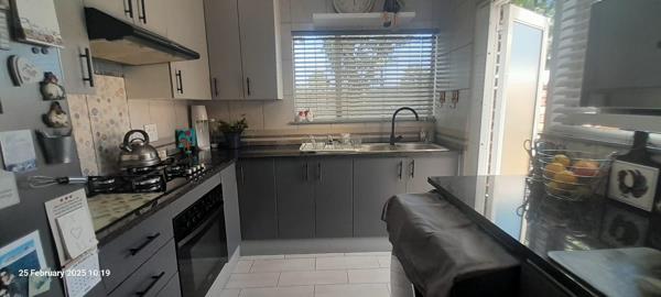This lovely three-bedroom, two-bathroom home is designed for comfort and style. The open-plan lounge and dining room offer a relaxed living space and lead out to your own private garden. The home boasts stunning tiles throughout, adding a sleek, modern feel. The kitchen is a highlight, featuring granite marble countertops and generous counter space for preparing meals. Outside, youll find a small, well maintained common garden and paved driveway to the secure entrance. A family picnic area and a sparkling communal swimming pool are perfect for summer. Additional conveniences include a lock up garage with two covered carports.