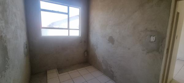 This upstairs unit is in the process of being totally revamped. The kitchen and tiles are removed as in the bathroom. Walls have been replastered. The bath is still in the bathroom.