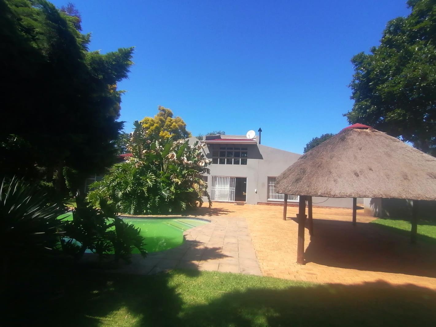 The outdoor amenities are a highlight designed for leisure and entertainment. A private swimming pool complemented by a charming thatched Lapa offers an ideal setting for gatherings or quiet enjoyment. Extensive paved patio areas provide ample space for outdoor furniture and activities all set within a lush mature garden with established trees that ensure privacy. The property also includes a double garage and additional parking for three cars ensuring ample space for residents and guests.