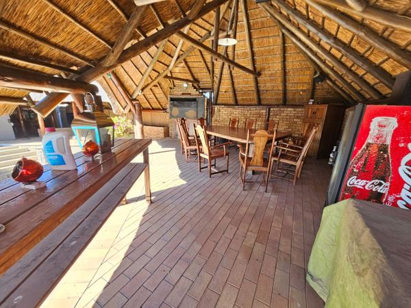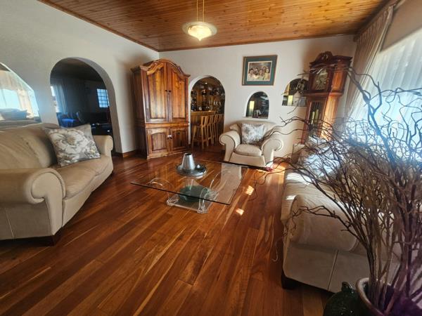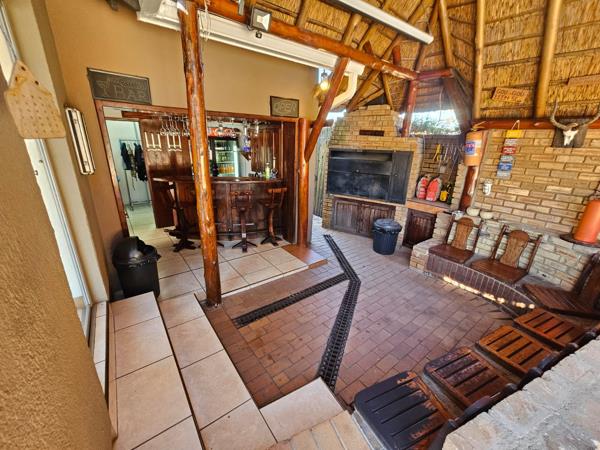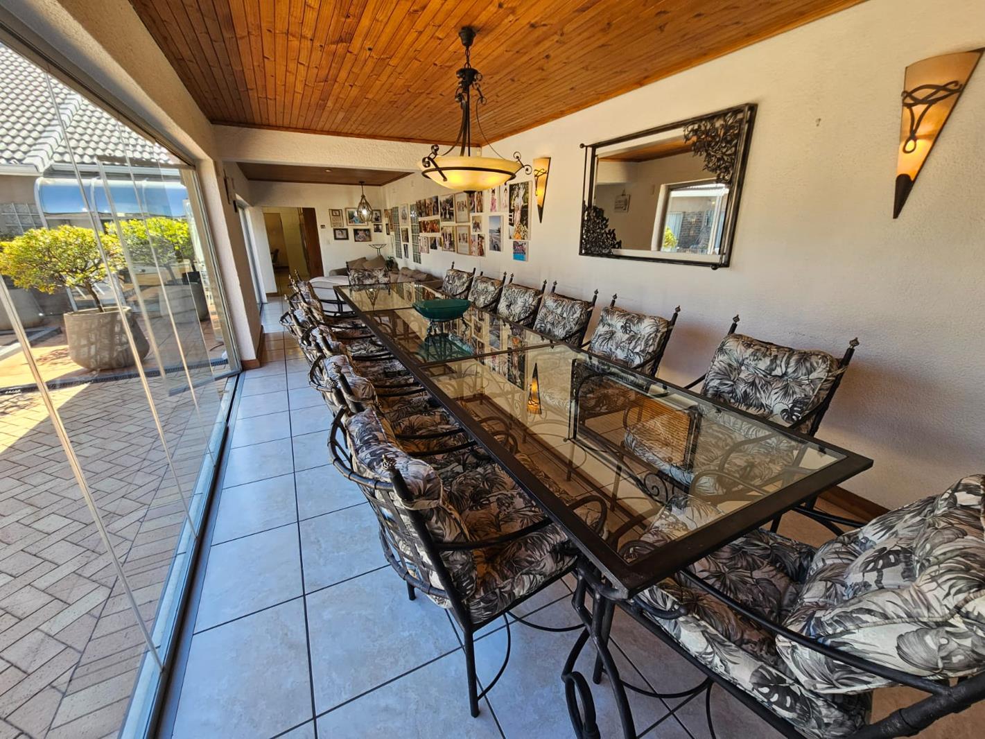 This home offers peace of mind with a full alarm system, intercom, beams, 32 CCTV cameras, electric fencing, seven air conditioners, a diesel generator, four geysers, a 10kVA power supply, and three-phase electricity. Additional features include a double garage, six carports, and two laundry rooms with cupboards.