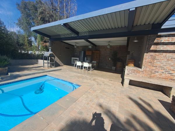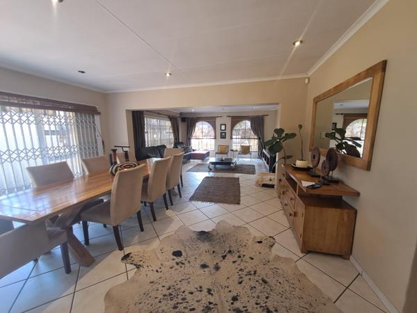 The breath taking outdoor space is a true oasis boasting a sparking swimming pool, ample garden space and a vibrant lapa entertainment area ideal for all your hosting needs. The outside enclosed patio and the outdoor braai land are a showstopper. This home also comes with a two door garage with automated doors and space for additional parking. The outside walkway is beautifully paved coordinating the paving and the lawn.