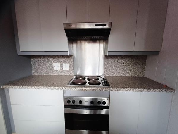 Kitchen with Melamine counter tops, hob, under-counter oven, extractor fan