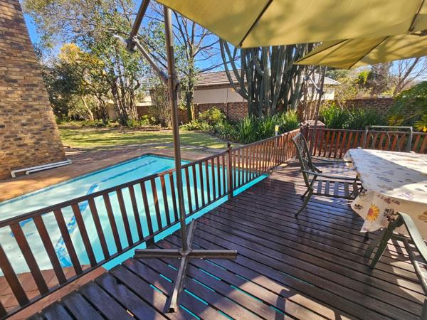 Outdoors, a covered patio and expansive deck overlook a sparkling heated swimming pool, all set in a beautifully landscaped, low-maintenance garden the ideal setting for family gatherings or entertaining friends.