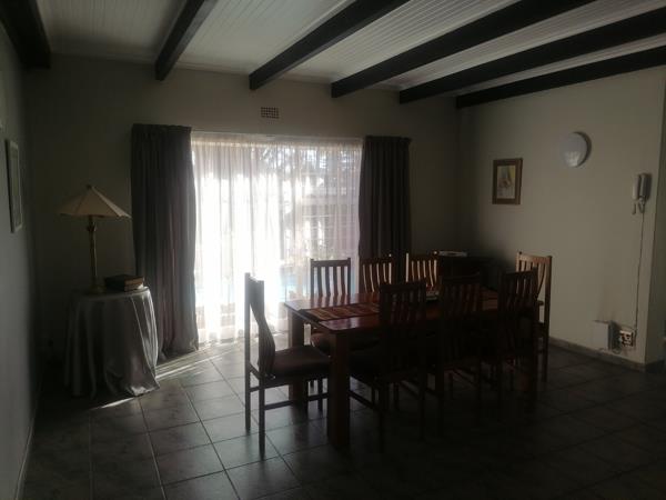 The neighbourhood surrounding this property is known for its safe and secure environment with features like electric fencing providing residents with peace of mind. The beautifully maintained garden is a haven of tranquillity with lush plants and a sparkling swimming pool. The low maintenance face brick home ensures a hassle free living experience and the big inverter and lithium battery system provides energy efficiency. The caravan garage and two double automated garages provide ample parking space and the staff accommodation with its own bathroom is ideal for domestic staff.