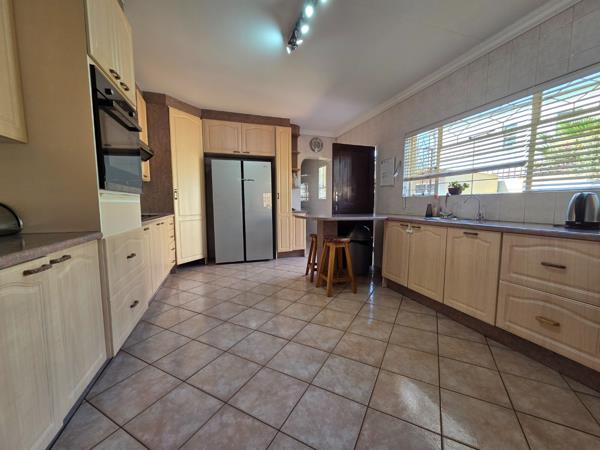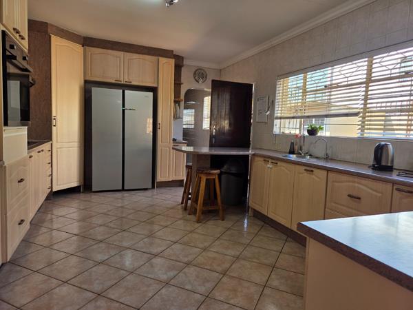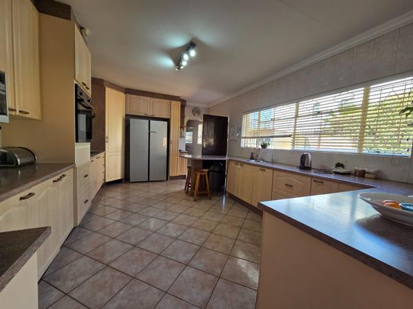 At the heart of the home is a pristine kitchen, complete with ample cupboard space, a pantry, breakfast nook, and a separate scullery for added convenience.