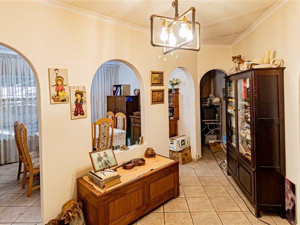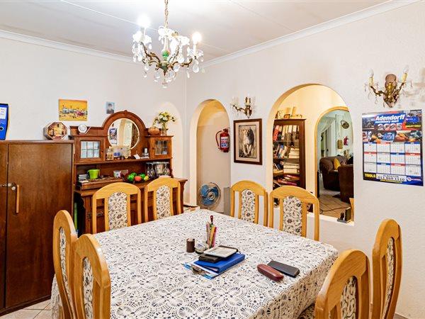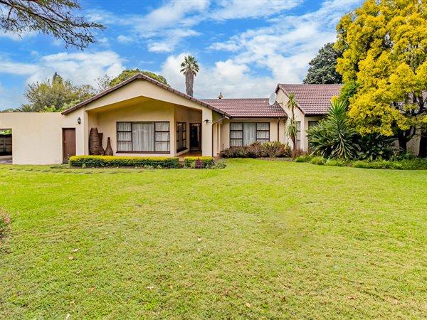 This home features a covered patio with a built-in braai, ideal for entertaining family and friends year-round. The outdoor space is complete with a sparkling swimming pool, a gorgeous green lawn, and a stunning garden.