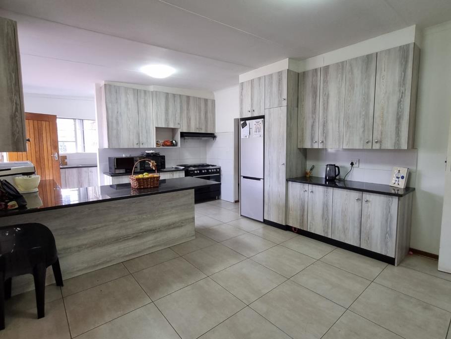 Discover this spacious three bedroom family home situated on a generous 1500 sqm erf in the established suburban area of Brackenhurst, Alberton. Boasting a substantial 330 sqm under roof this residence offers ample living space designed for comfort and versatility. The interior features two inviting lounges, a dedicated dining room and an additional family TV room providing multiple zones for relaxation and entertainment. The heart of the home is a modern open-plan kitchen equipped with stylish light wood-grain cabinetry, dark countertops, a large islandbreakfast bar and tiled flooring. It includes integrated appliances and dedicated spaces for a dishwasher and washing machine ensuring functionality.