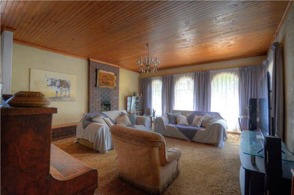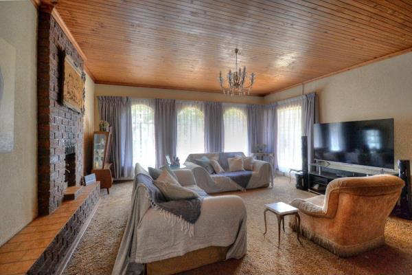 Entrance hall, massive lounge with fireplace, separate dining room open onto massive wood fitted kitchen. 4 large bedrooms, study, 2 full bathrooms. 2 garages, full staff accommodation, storeroom, incomplete pool. large entertainment patio on massive grounds ready for further expansion. HURRY!!!!